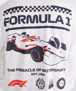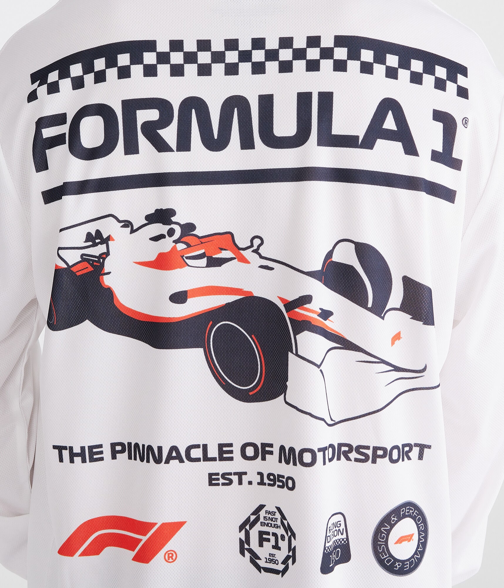 True F1 fans will never tire of sporting this athletic mesh tee accented with authentic racing graphics and contrast-color trim.Details Mesh fabric Front: printed F1 logo & related text | badge, race car & checkered design graphics Back: Formula 1 text, badges & race car graphic Contrast-color collar, cuffs & sleeve stripes Style: 6036 ImportedFit Unisex fit Crew neck Approx. length (M): 28.5" Male model height: 6’1" | Wear size: Large Female model height: 5’9" | Wear size: SmallCare & Materials 100% polyester Machine wash/dry